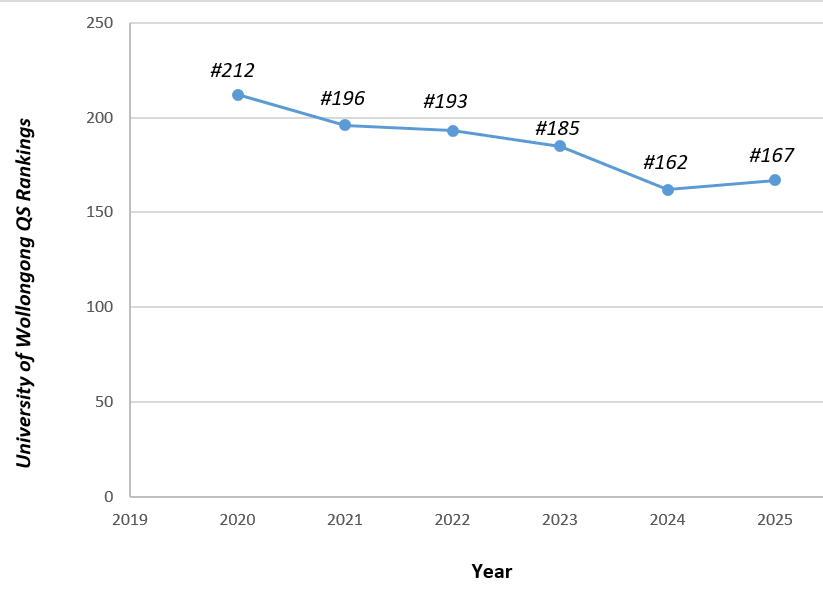 Figure 1: University of Wollongong QS Rankings (2020-2025)